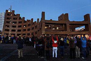 Au gré de ses voyages, le plasticien Olivier Grossetête imagine de gigantesques sculptures en cartons, pouvant atteindre vingt-cinq mètres de haut et peser plus d’une tonne. Ces constructions, conçues spécifiquement pour chaque lieu, donnent au public l’occasion de vivre une expérience humaine et artistique inédite : le public est invité à assembler des boîtes en carton vides pour édifier un bâtiment, sans grue ni machine, uniquement avec l’énergie humaine et à bras d’homme. Éphémère par nature, comme tout organisme vivant, sa fin peut avoir un sens, celui du temps qui lui est donné. Le projet se déroule en trois étapes : les ateliers en amont (du 2 au 5 octobre), l’édification en elle-même (samedi 6 octobre, de 9h à 16h), puis la destruction de la structure (dimanche 7 octobre, à 15h). Les constructions d’Olivier Grossetête sont une réflexion sur l’architecture, mais aussi une démarche sociale. L’artiste invite les habitants à se réunir autour de l’édification d’un bâtiment utopique et éphémère, et de vivre une expérience artistique.