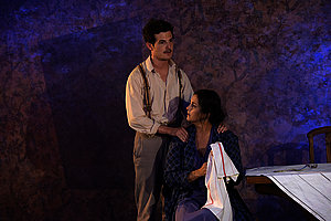 À Saint-Louis, en pleine tourmente des années 1930, on découvre l’équilibre fragile d’une famille dont le père s’est volatilisé. La mère et ses deux grands enfants, Jim et Laura, se débattent dans les difficultés matérielles en dépit de tous les efforts de la mère, cherchant à faire revivre une soi-disant splendeur passée. Alors qu’ils sont perdus entre rêves et illusions, l’espoir frappe à leur porte un soir d’été. Premier succès public de Tennessee Williams, La Ménagerie de verre – en partie autobiographique – est la plus émouvante de ses pièces. Charlotte Rondelez réunit sur le plateau quatre comédiens sublimes pour lui donner corps. Tour à tour autoritaire et fragile, explosant de joie et presque aussitôt en larmes, Cristiana Reali illustre tout son talent dans le rôle d’Amanda. La soirée à laquelle nous assistons – un dîner est organisé pour marier la fille à un prétendant qui ignore tout du sort qu’on lui réserve – est bouleversante de bout en bout.