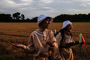 Sauvages ! est une promenade théâtrale, comique et poétique, qui entraîne les spectateurs et spectatrices hors du théâtre pour une rencontre étonnante avec les plantes qui bordent nos chemins, même au cœur de la ville.