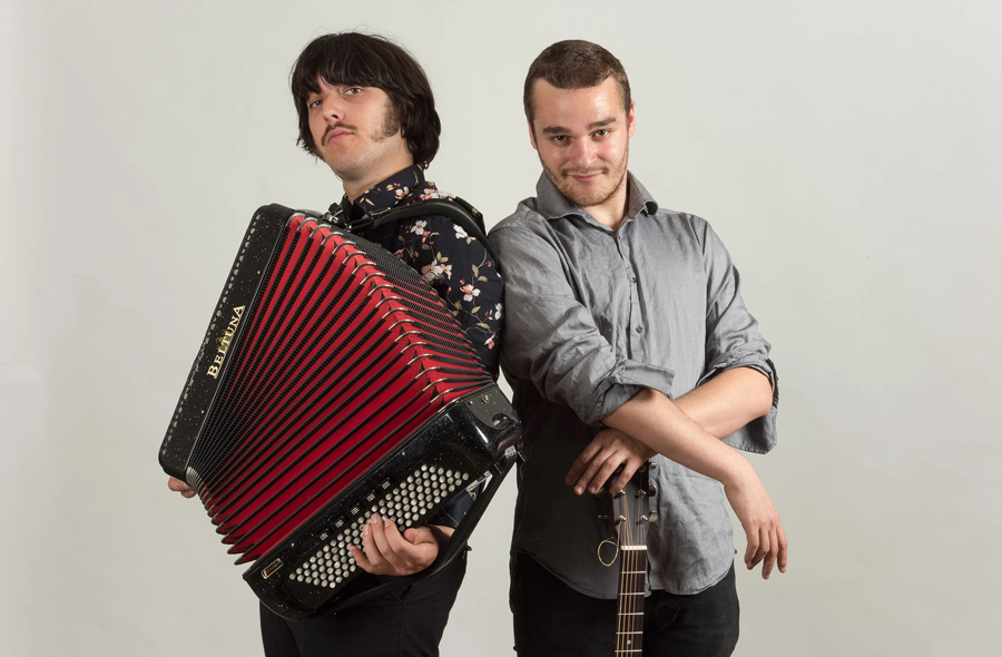 Duo veveysan à l’humour décapant, Les Fils du Facteur font depuis maintenant six ans la tournée des bars et festivals de Suisse romande, commençant à se tailler une jolie réputation sur la scène musicale actuelle. Ils distillent, avec une bonne humeur sans égale, leurs délicates notes acoustiques teintées de pop. Avec Sacha Maffli à la guitare et Emilien Colin à l’accordéon, ils tracent leur chemin avec panache. Leur répertoire illustre parfaitement leur jeunesse et leur liberté d’esprit. Le duo se plait également à revisiter quelques grands classiques d’hier et d’aujourd’hui. Un splendide kaléidoscope musical qui ne doit rien au showbiz marketé et qui vogue avec sincérité entre humour, poésie et mélancolie légère. Un authentique moment de plaisir, une bouffée d’oxygène, à savourer un verre à la main, histoire de bien terminer la journée et d’entamer la soirée en musique. Ambiance conviviale assurée !