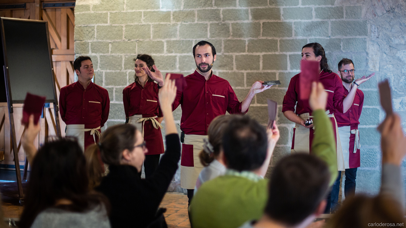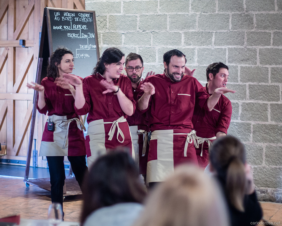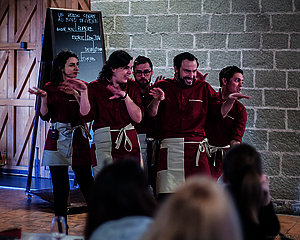 La Comédie Musicale Improvisée interroge notre rapport au choix dans un moment de gastronomie, comme un écho à la subtile négociation entre improvisateur·trice·s et public lors de la conception d’un spectacle : jusqu’où les comédien·ne·s pourront-elles se rebeller contre les formules toutes faites, les clichés et les fautes de goût ? Un délire théâtro-musical où c’est vous qui choisissez à quelle sauce vous voudrez manger.