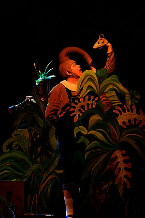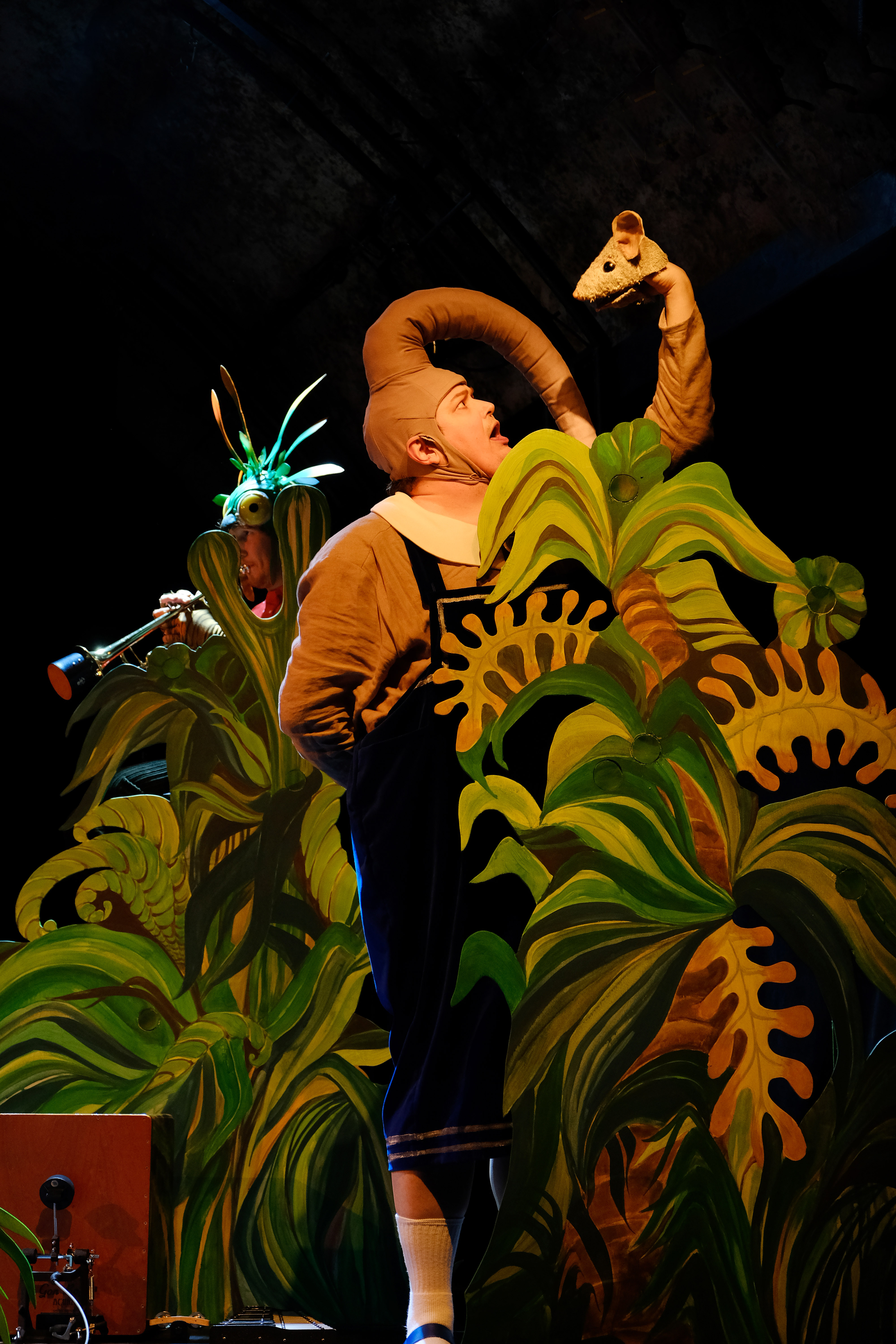 Il était une fois des poèmes de Jacques Roman et des illustrations de Carll Cneut. Ensemble, ils formaient une histoire, une histoire d’animaux. Dans une jungle luxuriante, on croise un lapin pressé, un cheval harassé, un souriceau fort costaud, et aussi des oies audacieuses, un poisson conteur et des singes songeurs. Le vibraphone élégant, brillant, à la sonorité lumineuse souligne par ses harmoniques les impressions mystérieuses et volatiles. La trompette, au son cuivré proche de la voix et au timbre profond, apporte à l’univers musical une touche sauvage, railleuse, cajoleuse, terrienne. Ces instruments unis aux voix forment un ensemble de chambre idéal pour ce poème musical.